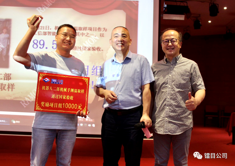 拿着手中的奖牌和奖金,大家乐开了花。有获奖员工还在项目现场,也通过手机视频连线分享他的喜悦和获奖感言:“此次评选上公司优秀员工,我感到非常荣幸,感谢公司和田总对我们工作的认可。特别是拿到红包,我们更加干劲满满了!” 话一出,逗乐了全场观众,大家在一片其乐融融的氛围中感受着镭目先进和榜样的力量。