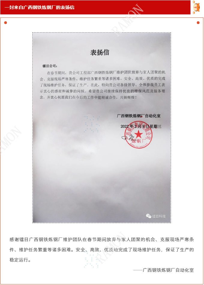 点赞|春节奉献 坚守客户现场的同事得到表扬信啦
