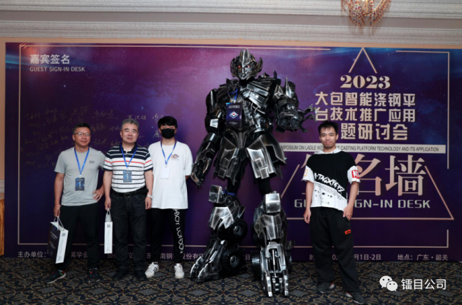 来自全国各地钢企的董事长、总经理、总工程师,以及炼钢厂厂长共二百多人出席了此次会议。并就大包智能浇钢平台进行了专题详细互动交流研讨。镭目机器人变形金刚在会议签名墙处展示,并与代表互动交流,成为此次会议的亮点之一。