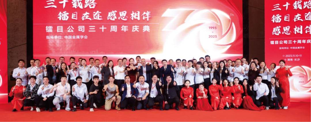 2023年11月10日-11日,镭目公司建企30周年庆典活动成功举办,庆典现场政府部门领导、钢厂客户代表、合作伙伴、业内同仁、武汉大学的各位校友、老同事以及公司高层、员工代表共计400多人齐聚长沙,共庆镭目三十周年华诞。