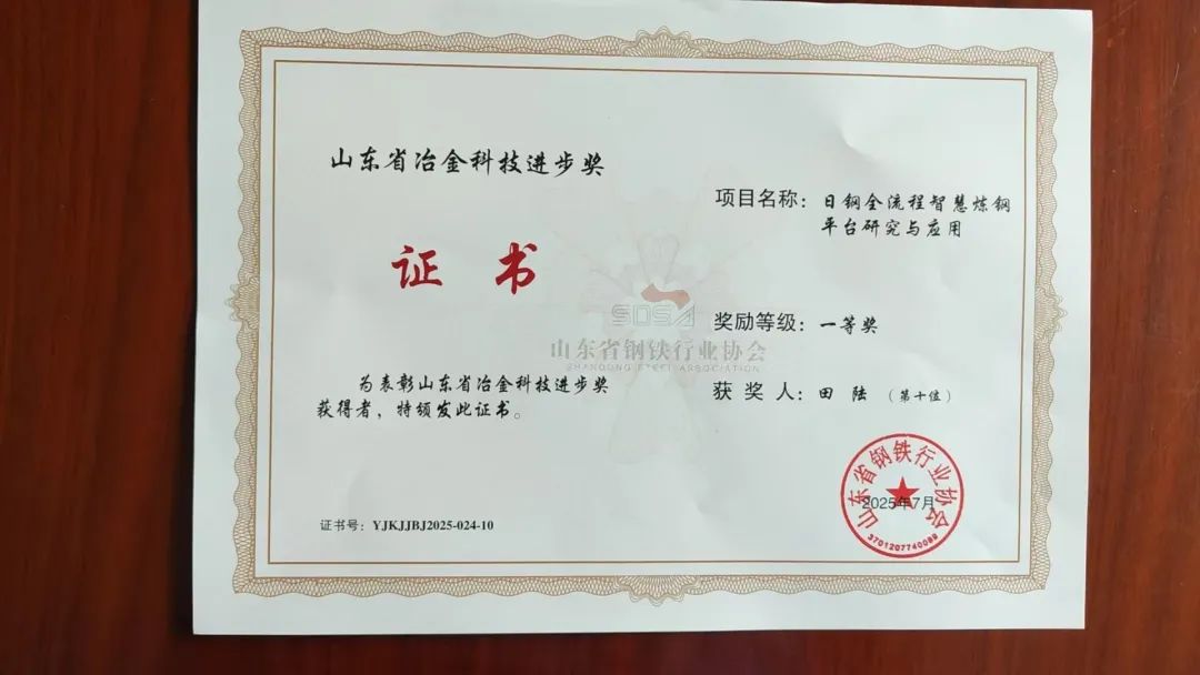 祝贺《日钢全流程智慧炼钢平台研究与应用》项目荣获省冶金科技进步一等奖!