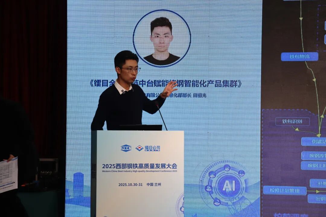大会期间,“赋能西部,面向全球 —— 镭目智能炼钢全流程项目成果发布” 仪式成为全场焦点。镭目公司项目经理田运辉详细讲解了全流程智能炼钢的技术概念、技术细节与效益成果。